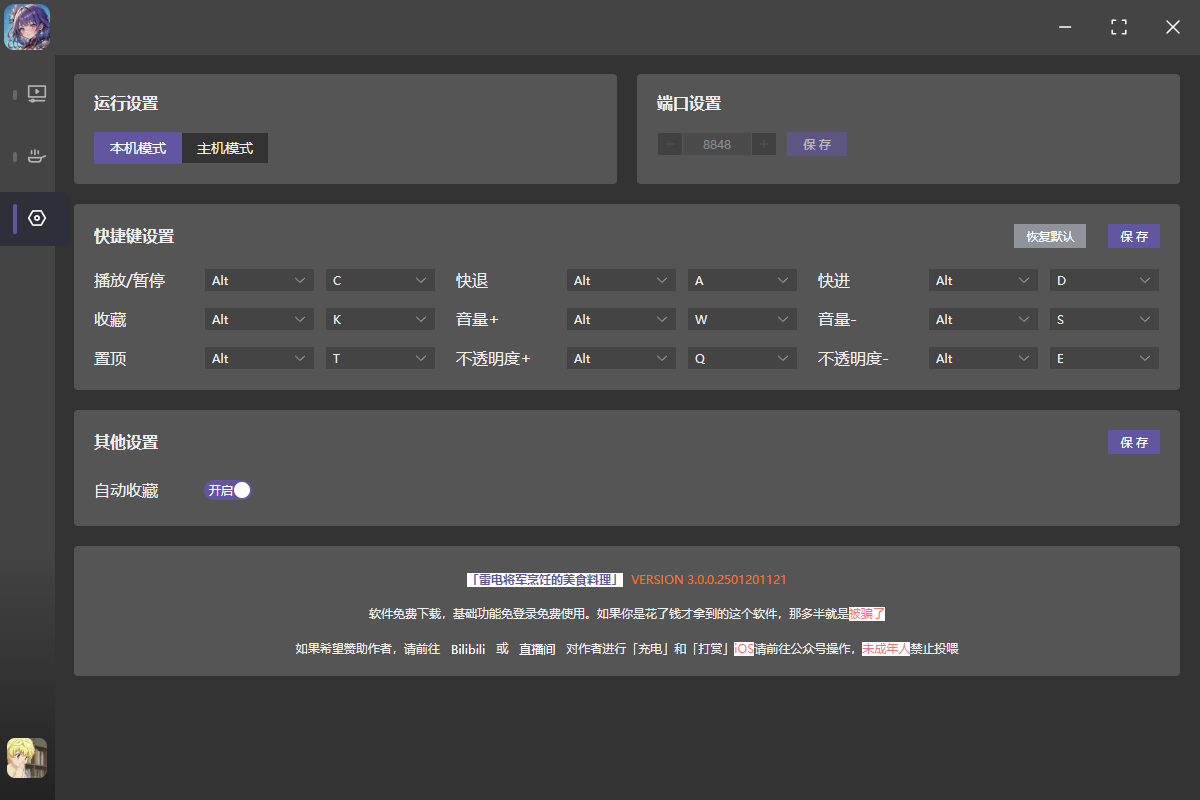 注意不要和其他软件发生冲突(比如「快退」的快捷键是「Alt+A」,而微信截图的快捷键也是「Alt+A」)。如果发生冲突,需要修改成其他按键。