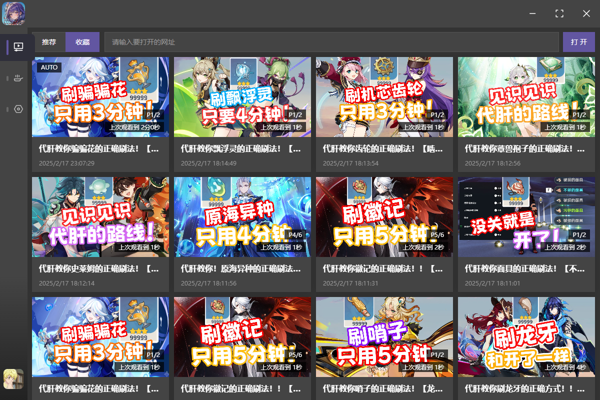 如果推荐和收藏标签没有想打开的视频,也可以在地址栏输入对应地址,点击打开按钮,也可以唤起视频窗口。